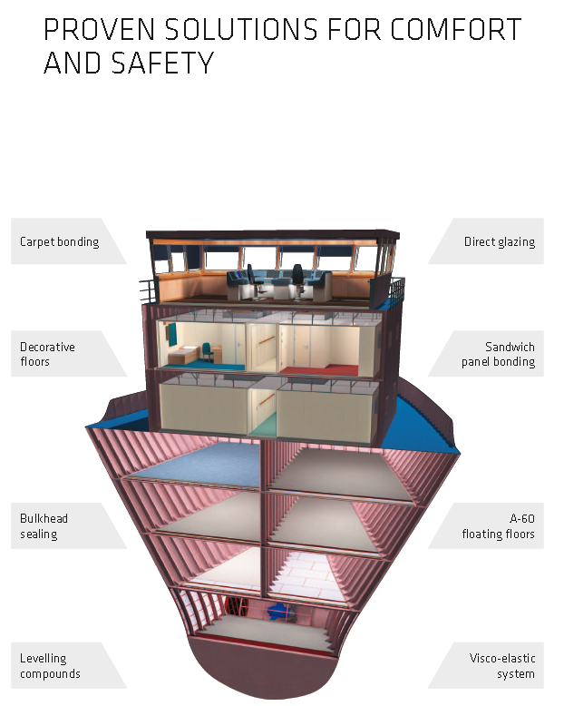 西卡作為世界領(lǐng)先的粘接、密封、阻尼和增強(qiáng)產(chǎn)品開(kāi)發(fā)公司,是全球海事行業(yè)的供應(yīng)商和合作伙伴,不僅為船舶工業(yè)提供粘接和密封系統(tǒng),還為船舶工業(yè)提供一系列聲學(xué)和地板系統(tǒng)。西卡在所有造船國(guó)家都有自己的子公司,因此無(wú)論客戶(hù)在哪里,西卡都能確保一流的訂單處理、交付、應(yīng)用開(kāi)發(fā)、技術(shù)和商業(yè)支持。